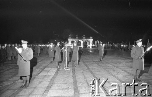 Apel poległych w 30 rocznicę wyzwolenia stolicy, salwy honorowe.