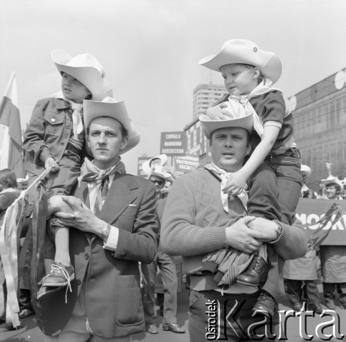Uczestnicy pochodu pierwszomajowego, dziewczyny z piłkami.