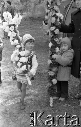 Niedziela Palmowa na Kurpiach, rodzina z palmami na wozie.
