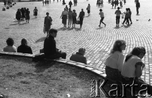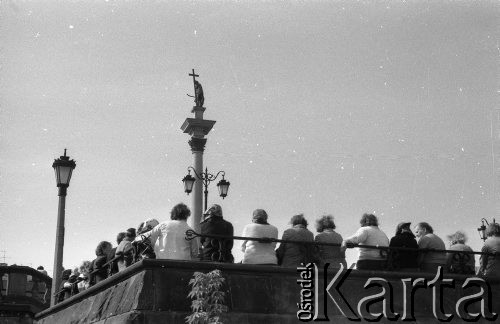 Stare Miasto, Plac Zamkowy, grupa osób obok Kolumny Zygmunta.