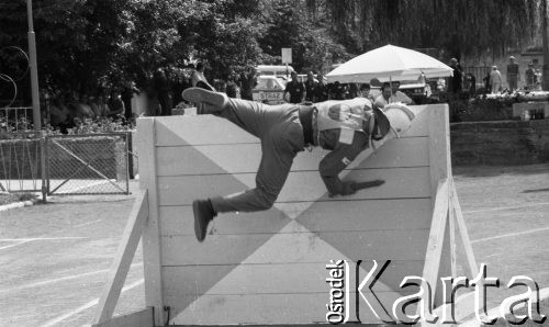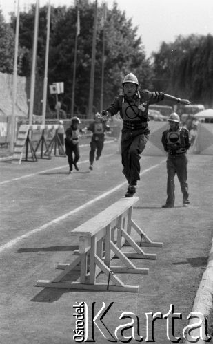 Stadion Gwardii, zawody w sportach pożarniczych, bieg po kładce.