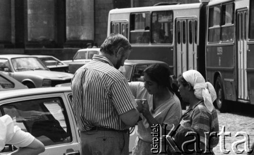 Cyganki wróżące mężczyźnie na parkingu przed Pałacem Kultury i Nauki.
