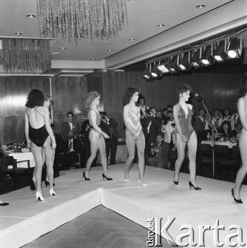 Finał wyborów Miss Mazowsza, dziewczyny w kostiumach kąpielowych na scenie.
