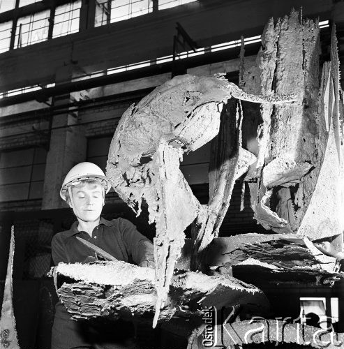 Plener w Hucie Warszawa - artyści spawają poszczególne elementy stalowej rzeźby.