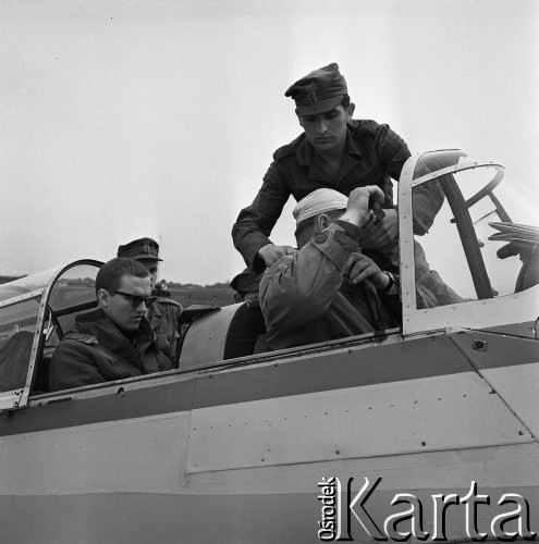 Lotnicy w kabinie samolotu podczas Ogólnopolskiego Rajdu Samolotowego.