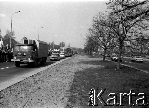 Niezależna manifestacja pierwszomajowa na placu Zamkowym, hasło "Wolność internowanym".