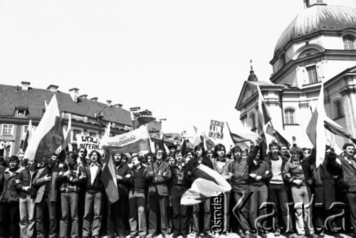 Stan wojenny - manifestacja niezależna na Placu Zamkowym na Starym Mieście, zorganizowana przez podziemne struktury "Solidarności".