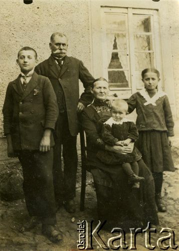 Portret rodzinny Ciecińskich. Piotr, z zawodu szewc, z żoną Wandą, z domu Horlita, z dziećmi, pierwszy z lewej Paweł.