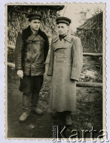 Antoni Jarzębiak (w środku), starszy brat późniejszego męża Luby Jarzębiak - Pawła, w towarzystwie kolegów. Rodzina Jarzębiaków została deportowana 15.04.1945 r. z Łabowy k. Nowego Sącza.