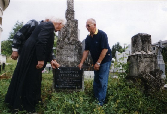 Fotografia z cmentarza w Monasterzyskach na Ukrainie, które przedstawiają umieszczenie tablicy upamiętniającej Klementynę Stefańską, zamordowanąw Zalesiu przez UPA 7 lutego 1945 roku. Kolekcję przekazał Stanisław Stefański.