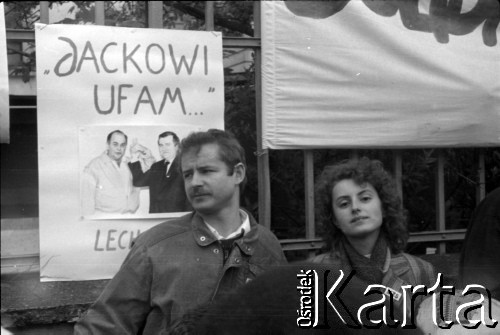 Kampania przed wyborami parlamentarnymi, zbieranie podpisów poparcia dla kandydatów Komitetu Obywatelskiego przed kościołem św. Stanisława Kostki.