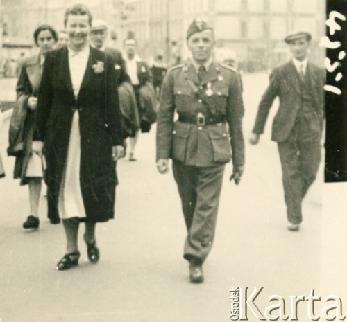 Pułkownik Tadeusz Münnich z żoną Ireną na spacerze.