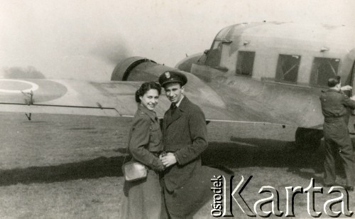Major Adam Ostrowski z żoną Rosette przy myśliwcu Spitfire, którym latał w 317 Dywizjonie Myśliwskim „Wileński” w czasie II wojny światowej.