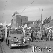 1.05.1954, Starogard Gdański, Polska Pochód pierwszomajowy - przez starogardzki rynek przechodzą oficjele Fot. Irena Jarosińska, zbiory Ośrodka KARTA