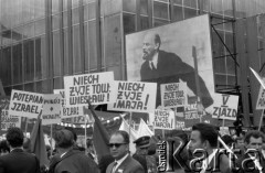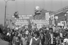 1.05.1988, Gdańsk, Polska. Transparent "Precz z partią. FMW. Solidarność". Fot. Jarosław Rybicki, Archiwum Federacji Młodzieży Walczącej, zbiory Ośrodka KARTA