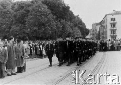 18.07.1943, Lwów, dystrykt Galicja, Generalna Gubernia. Przemarsz ochotników do 14 Dywizji Strzeleckiej SS "Galizien". Fot. NN, zbiory Ośrodka KARTA, udostępnił Stanisław Blichiewicz