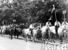 18.07.1943, Lwów, dystrykt Galicja, Generalna Gubernia. Uroczysta odprawa ochotników do 14 Dywizji Strzeleckiej SS "Galizien", kozacy na koniach. Fot. NN, zbiory Ośrodka KARTA, udostępnił Stanisław Blichiewicz
