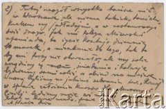 27.10.1917, Szczypiorno k/Kalisza, Polska. Rewers kartki pocztowej wysłanej przez żołnierza 1 Pułku Ułanów Legionów Polskich Juliusza Kamlera (1898-1919) ze Szczypiorna do jego ojca Juliusza Leopolda Kamlera zamieszkałego w Warszawie przy ulicy Pięknej. Juliusz Kamler w lipcu 1917 roku został internowany w obozie dla legionistów w Szczypiornie. W kartce do ojca porusza kwestię jego stanu zdrowia oraz zdrowia matki (Amelii Kamler), a także starań o uwolnienie go z obozu. Fot. zbiory Ośrodka KARTA, Pogotowie Archiwalne [PAF_004], udostępniła Anna Stańczykowska