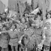 22.07.1974, Katowice, Polska. Obchody XXX-lecia PRL, uroczyste powitanie radzieckiej delegacji z Leonidem Breżniewem na czele. Grupa zuchów machających chustami. Fot. Kazimierz Seko, zbiory Ośrodka KARTA