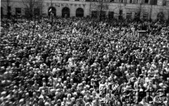 3.05.1981, Bydgoszcz, Polska. Tłum zgromadzony na mszy świętej celebrowanej przez biskupa gnieźnieńskiego Jana Michalskiego na Starówce. Fot. Tomasz Tomaszewski, zbiory Ośrodka KARTA