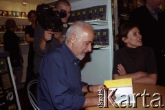 05.2000, Warszawa, Polska. 45 Międzynarodowe Targi Książki, n/z Janusz Weiss (L) podczas spotkania autorskiego książki "Jeden może, drugi nie...". Fot. Artur Polit, zbiory Fundacji Ośrodka KARTA