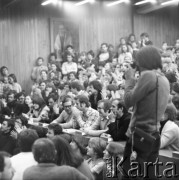 16.02.1981, Warszawa, Polska. Strajk studentów Akademii Medycznej w sprawie rejestracji Niezależnego Zrzeszenia Studentów. Wiec w sali wykładowej. Fot. Adam Szymański, zbiory Ośrodka KARTA, kolekcję zdjęć przekazał Adam Szymański