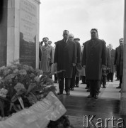 Kwiecień 1965, Warszawa, Polska. Wizyta radzieckich władz państwowych w 20. rocznicę zawarcia układu o przyjaźni między Polską a ZSRR - Aleksiej Kosygin i Leonid Breżniew przy Grobie Nieznanego Żołnierza. Fot. Romuald Broniarek/KARTA