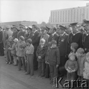Październik 1978, Warszawa, Polska. Defilada wojskowa na Placu Zwycięstwa, na pierwszym planie przedstawiciele Ludowego Wojska Polskiego w tym Marynarki Wojennej, wojsk lądowych oraz Armii Radzieckiej i dzieci, w tle Hotel Victoria. Fot. Romuald Broniarek/KARTA