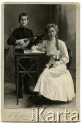 Pierwsza dekada XX wieku, Rzeszów, Austro-Węgry. Jan Witrzens z nieznaną kobietą. J. Witrzens - w latach 1914-1918 służył w armii austro-węgierskiej, był żołnierzem Armii gen. Hallera. Walczył w latach 1919-1921 w szeregach 144 pułku strzelców, ranny w bitwie warszawskiej 1920 r. Po wojnie służył w 71 pułku piechoty, od 1936 w Kierownictwie Zaopatrzenia Int. W 1939 r. walczył w obronie Lwowa. Więzień obozu w Starobielsku, rozstrzelany w Charkowie. Fot. NN, zbiory Ośrodka KARTA, kolekcja Jana Witrzensa [AW III/558]