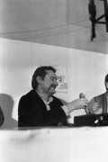 Wrzesień lub październik 1981, Gdańsk, Polska.. Konferencja prasowa BIPS (Biuro Informacji Prasowej Solidarność) podczas I Krajowego Zjazdu Delegatów NSZZ „Solidarność”. Na zdjęciu Seweryn Jaworski. Fot. NN, zbiory Ośrodka KARTA, udostępnił Krzysztof Frydrych.