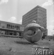 1976, Wrocław, Polska Fregment miasta, nowoczesna rzeźba przed budynkiem. Fot. Jarosław Tarań, zbiory Ośrodka KARTA [76-130]
