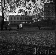 Czerwiec 1948, Cieplice Śląskie-Zdrój, woj. wrocławskie, Polska. Domy mieszkalne budowane przez Fabrykę Maszyn Papierniczych Fampa (powstała w 1946 r. w miejsce istniejącej od XIX w. Fabryki Hansa Füllnera). Fot. Jerzy Konrad Maciejewski, zbiory Ośrodka KARTA