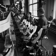 Październik 1976, Nowy Targ, Polska. Pracownice szwalni fabryki obuwia "Podhale", przeszywające cholewki zimowych butów. Fot. Romuald Broniarek/KARTA