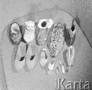 Styczeń 1969, Radom, Polska. Pracownica Radomskich Zakładów Przemysłu Skórzanego "Radoskór" prezentuje buty z kolekcji wiosenno-letniej. Fot. Romuald Broniarek/KARTA