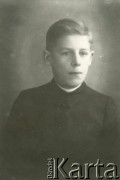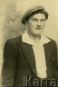 1924-1932, Kosów Poleski, woj. poleskie, Polska. Członkowie "Kółka młodzieży" pozujący do fotografii przed budynkiem. Fot. Feliks Drozdowski, zbiory Ośrodka KARTA, Pogotowie Archiwalne [PAF_050], udostępnił Krzysztof Drozdowski