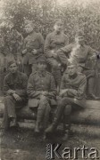 1920-1939, brak miejsca., Polska. Żołnierze Wojska Polskiego - pierwszy z prawej siedzi Leon Łatkiewicz. Fot. NN, zbiory Ośrodka Karta, udostępniła Elżbieta Bakanowska