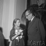 wrzesień 1954, Nowa Huta, Kraków, Polska Rozdawanie książek wygranych w Wielkiej Loterii Książkowej. Fot. Irena Jarosińska, zbiory Ośrodka KARTA