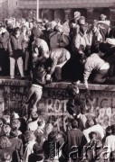 24.10.1980, Warszawa, Polska.. Tłum zgromadzony przed Sądem Wojewódzkiem w Warszawie i czekający na wynik rozprawy sądowej w sprawie rejestracji Niezależnego Samorządnego Związku Zawodowego "Solidarność". Młodzi ludzie z informacją o terminie ogłoszenia orzeczenia. Fot. NN, zbiory Ośrodka KARTA, udostępnił Krzysztof Frydrych.