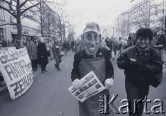 1988, Warszawa, Polska. Pracownicy wydawnictwa „Arkady”, biorący udział w niezależnej manifestacji. Fot. NN, zbiory Ośrodka KARTA, udostępniła Halina Myślicka.