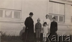 1920, Polska. Dzieci i ksiądz z ochronki zorganizowanej przez Amerykańską Misję Pomocy. Fot. NN, zbiory Ośrodka KARTA, udostępnił Tomisław Paciorek