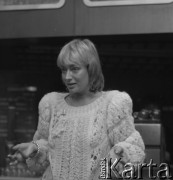 1986, Warszawa, Polska. Spotkanie z aktorką Ewą Szykulską w Domu Przyjaźni Towarzystwa Przyjaźni Polsko-Radzieckiej przy ulicy Marszałkowskiej 115. Fot. Romuald Broniarek, zbiory Ośrodka