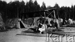 Listopad 1941, Kołtubanka, obł. Czkałowsk, ZSRR. Obóz formującej się Armii Andersa, czterej żołnierze tną drewno na opał. Fot. Czesław Zembal, Instytut Polski im. Gen. Sikorskiego w Londynie [album negatywowy A-I ROSJA] - płachta 3