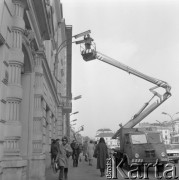 9.04.1984, Warszawa, Polska. Dźwignica na terenie budowy I linii metra w Warszawie, na odcinku wzdłuż al. Komisji Edukacji Narodowej. Fot. Edward Grochowicz, zbiory Ośrodka KARTA