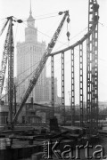 Lata 60., Warszawa, Polska. Wydobycie piasku z Wisły. Fot. Marek Zürn, zbiory Fundacji Ośrodka KARTA