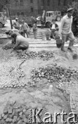 31.05.1981, Warszawa, Polska. Pogrzeb Kardynała Stefana Wyszyńskiego - Plac Zwycięstwa (dzisiejszy Plac Marszałka Józefa Piłsudskiego) po uroczystości. Dźwigi i kontenery na pierwszym planie, w tle - Hotel Europejski. Fot. NN, zbiory Ośrodka KARTA/Independent Polish Agency (IPA) przekazał Józef Lebenbaum