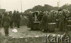 Ok. 1920, brak miejsca. Z prawej stoi Naczelnik Józef Piłsudski, obok niego Edward Rydz-Śmigły i biskup Władysław Bandurski. Z lewej grupa oficerów Legionów Polskich. Fot. NN, Instytut Polski i Muzeum im. gen. Sikorskiego w Londynie [szuflada nr 20 – Walki o niepodległość]