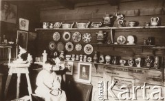 1940, Targu-Jiu, Rumunia. Prace plastyczne wykonane przez internowanych żołnierzy, zgromadzone na wystawie w świetlicy obozowej: modele mostów, jachtów, okrętów, obraz „Portret Króla Rumuni Karola” i dekoracja sceniczna „Wawel” autorstwa Władysława Wilińskiego. Fot. NN, zbiory Ośrodka Karta, album (A-XIII). Zdjęcie ze zbioru ocalonego przez pracownika ambasady PRL w Bukareszcie Jerzego Polakowskiego