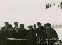 Styczeń 1948, Wheaton Aston koło Stafford, Anglia, Wielka Brytania. Siostry Bożena (2. z lewej) i Joanna (1. z prawej) Laskiewicz wraz z koleżankami w polskim obozie. Fot. NN, zbiory Joanny i Jacka Bernasińskich oraz Bożeny Laskiewicz, reprodukcje cyfrowe w Ośrodku KARTA w Warszawie i w Instytucie Polskim i Muzeum im. gen. Sikorskiego w Londynie.