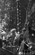 Wrzesień 1975, Warszawa, Polska. Festyn "Panorama Rzeszowska" na warszawskiej Starówce, członkowie zespołu folklorystycznego jadący meleksem. Fot. Romuald Broniarek/KARTA