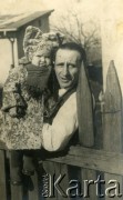 1946, Forli, Włochy. Silvia Szymula z domu Valli i Stefan Szymula (po prawej). S. Szymula przed wojną pracował w Powiatowym Zarządzie Drogowym w Buczaczu, po 1939 ukrywał się. Aresztowany po nieudanej ucieczce do Rumunii, osadzony w więzieniu w Czortkowie, później w Starobielsku. Skazany na 5 lat obozu, zesłany w styczniu 1941 roku na Syberię. Dostał się do Armii Andersa, z którą został ewakuowany do Iranu. Przeszedł z nią cały szlak bliskowschodni. W Palestynie ukończył Szkołę Podchorążych Piechoty Rezerwy i został mianowany porucznikiem. Walczył pod Monte Cassino. W 1948 roku emigrował z żoną i synkiem do Argentyny. Fot. NN, zbiory Silvii Szymuli, reprodukcje cyfrowe w Bibliotece Polskiej im. Ignacego Domeyki w Buenos Aires (Biblioteca Polaca Ignacio Domeyko) i w Ośrodku KARTA w Warszawie